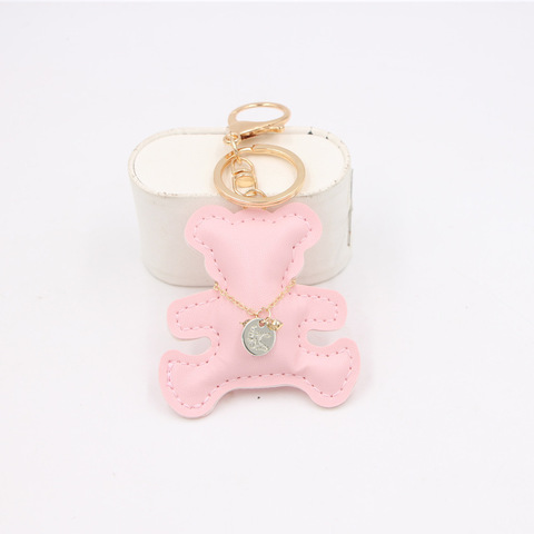 Regalo creativo de cuero con lazo de oso llavero colgante de coche colgante de bolsa lindo llavero de coche colgante de anillo